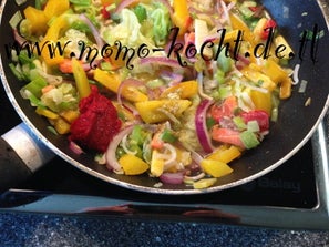 (Wer frische Mungobohnenkeimlinge statt des TK Gemüses nimmt, dies kommt erst zum Schluss rein!).