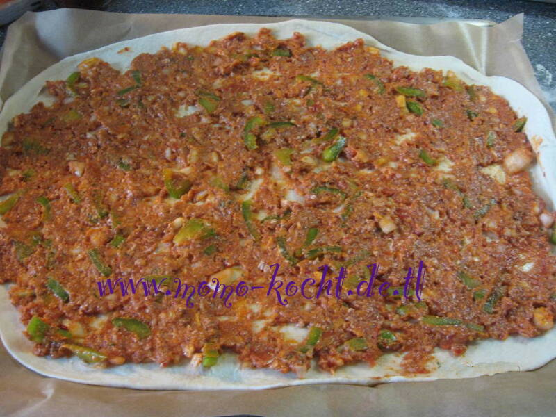 Übrigens Türkische Pizza besser gesagt Lahmacun heißt auf Deutsch: „Fleisch mit Teig“