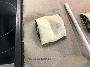 *Wer möchte kann auch nur eine Tüte Mohnfüllung nehmen und die zweite Hälfte des Teiges mit einer Kokosfüllung füllen. Bei der Kokosfüllung