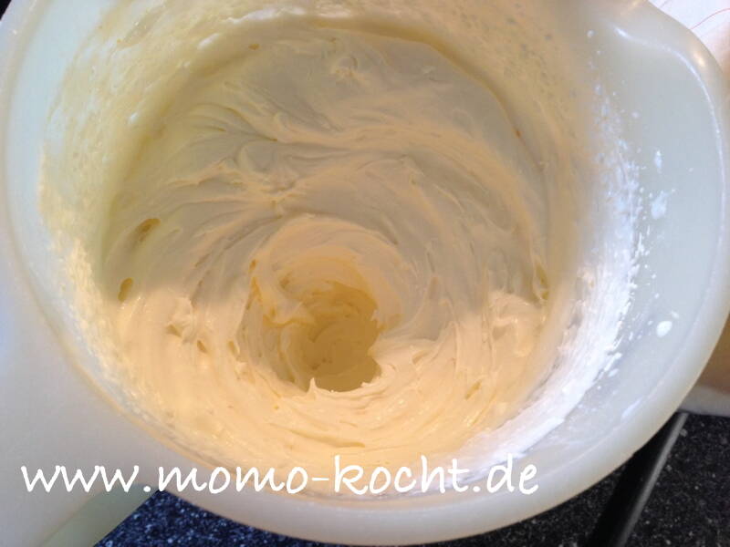 Für die Creme wird die Sahne zusammen mit der Puddingcreme steif geschlagen.