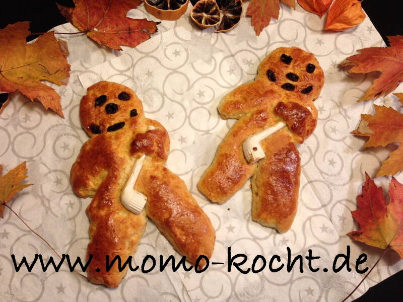 Jeder Weckmann bekommt dann Augen, Nase und einen Mund aus Sultaninen (ggf. auch Knöpfe, wer keine Pfeifen hat).
