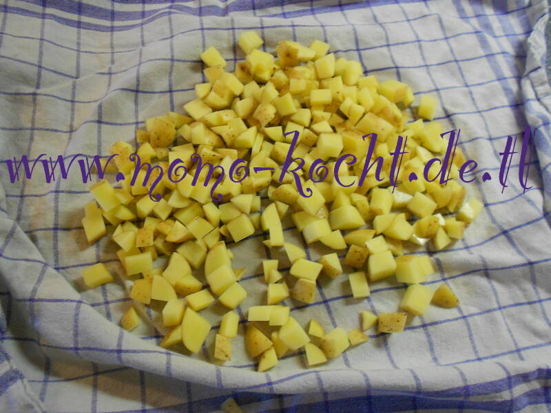 Die Kartoffeln waschen und in kleine Würfel schneiden.