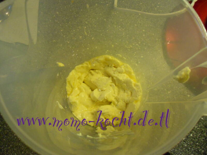 Jetzt kommt nur noch die Milch rein, dann wird der Zauberstab erst kurz nur unten gehalten und dann langsam nach oben gezogen. Dann ist die Aioli schon fertig! Gelingt immer!