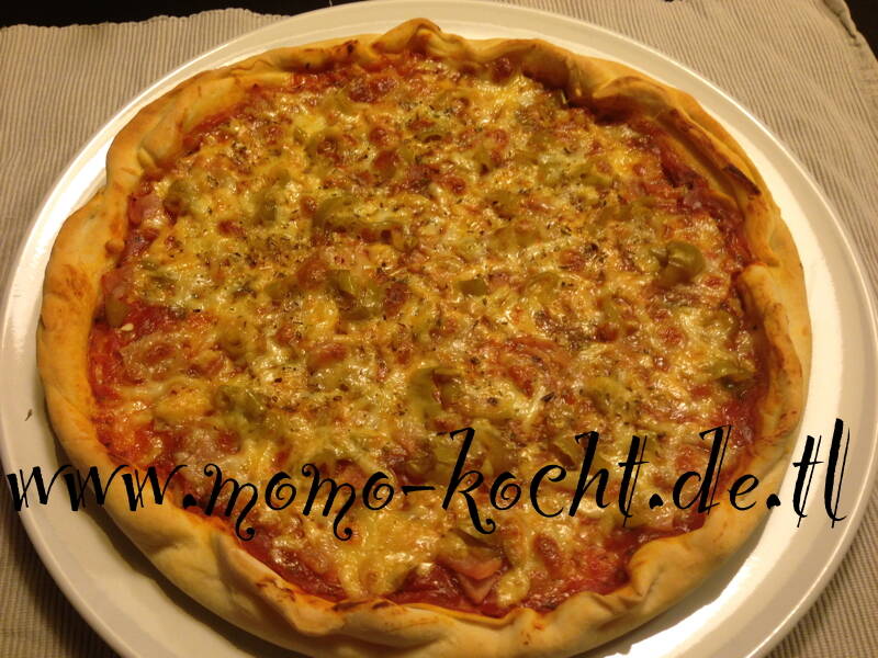 Außerdem schmeckt es auch gut wenn man nach dem backen etwas Rucola auf die Pizza gibt